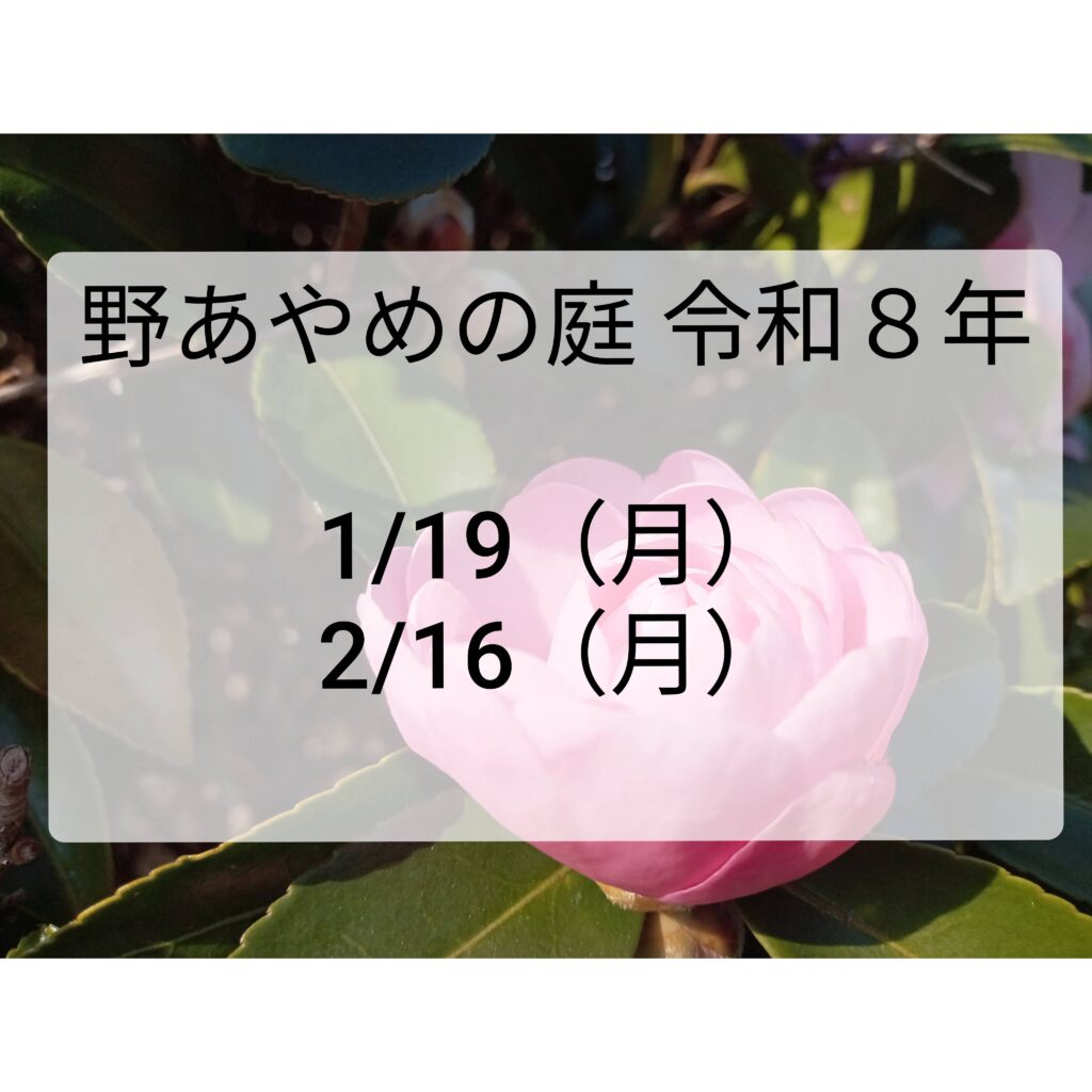『野あやめの庭』令和8年1~3月の予定 『野あやめの庭』令和8年1~3月の予定 2026年1月5日 suzukiyoko コメント 0件のコメント 『野あやめの庭〜綾庭〜』 年度内にあと2回、物語を伺います。 1/19(月) 2/16(月) いずれも午前中 参加費大人1人1000円(場所代、お茶代、物語執筆のための料金を含みます。) 人生の物語や活動紹介などをお話ししてもらえたら嬉しいです。 気になっていた方はこの機会にどうぞ。 なお、3月は調整月とします。 年度のまとめを行ったり、綾庭物語の執筆を進めます
